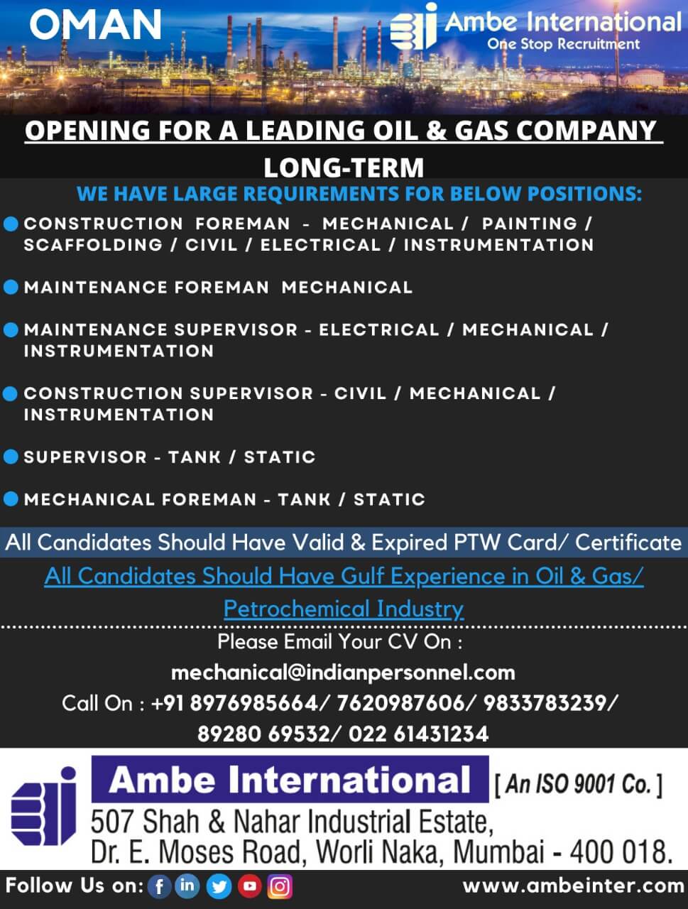 | Construction foreman - mechanical / piping / scaffolding / civil / electrical / instrumentation | ||