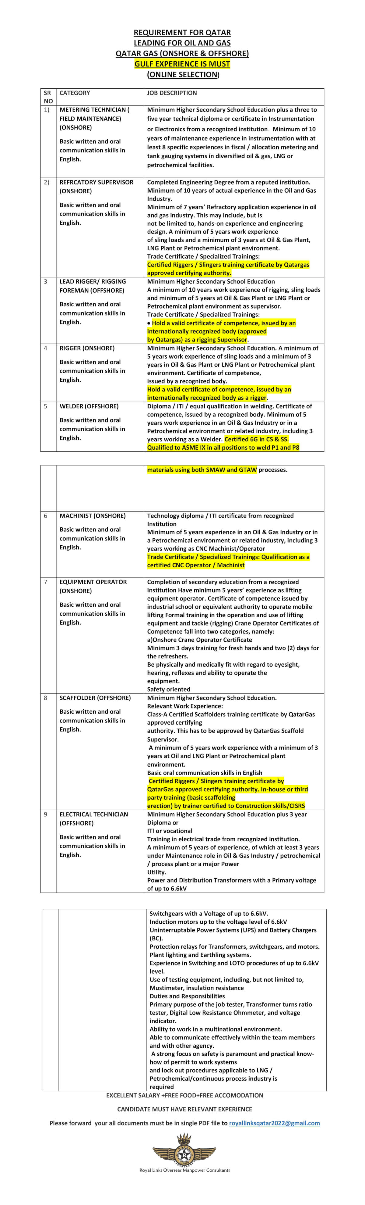 Oil and gas jobs in Qatar 2022 - Onshore & Offshore