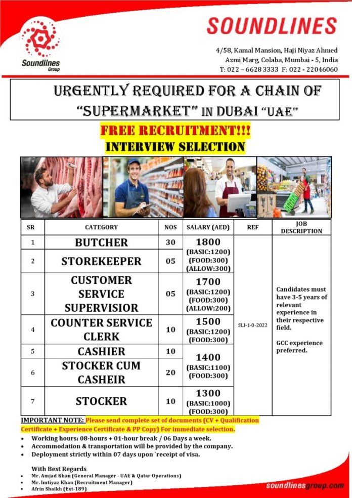 Dubai supermarket job vacancies 2022 - Free recruitment
