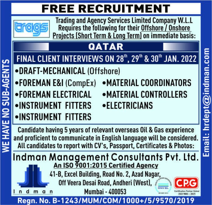 Walk-in-interview on 28th, 29th & 30th January 2022 at Mumbai
