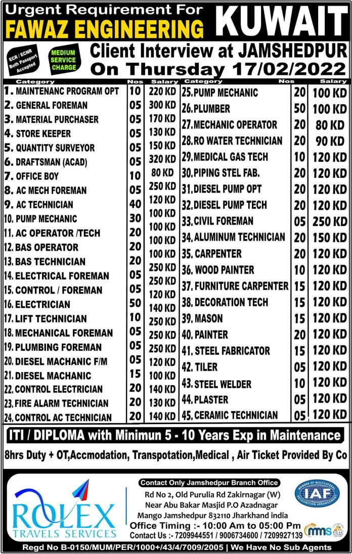Fawaz engineering Kuwait vacancies 2022 - Large recruitment