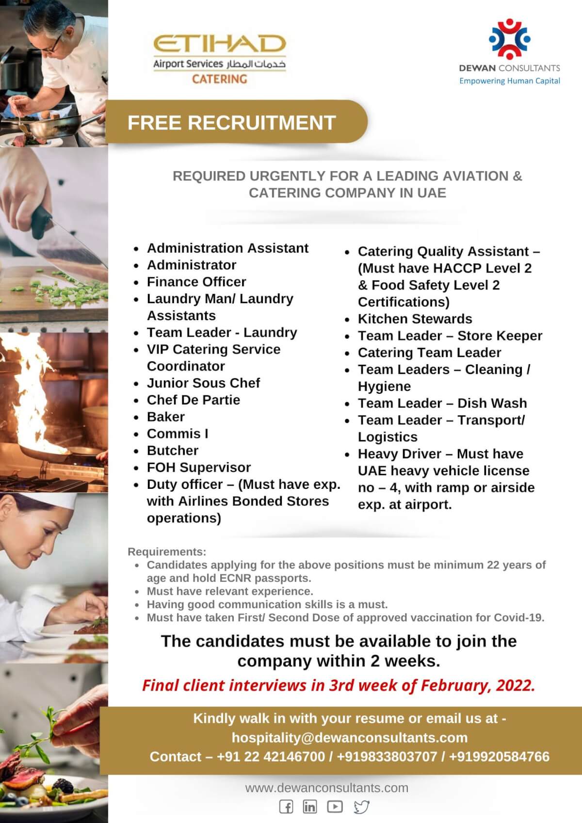 Free recruitment to UAE - Aviation & Catering company