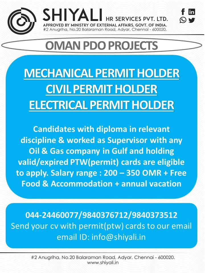 | Mechanical permit holder | 350 OMR | |