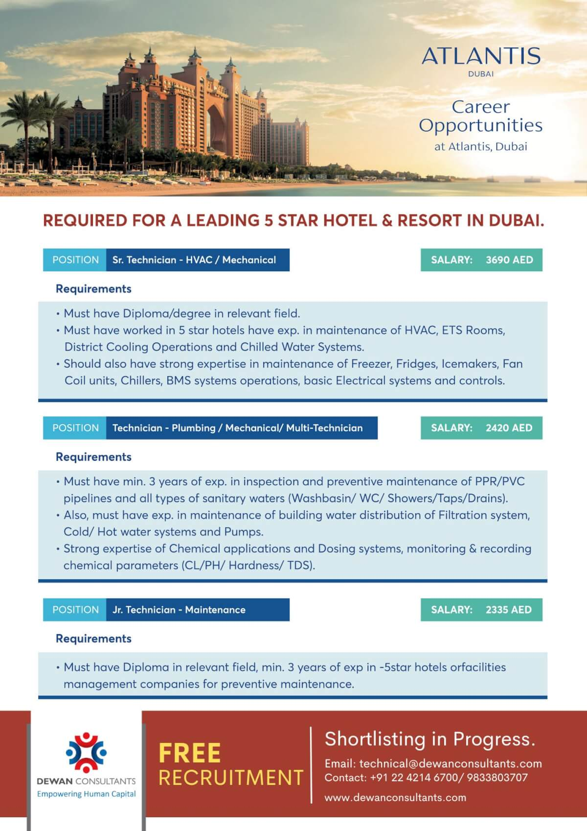 | Senor technician - HVAC / mechanical | 3690 AED | |