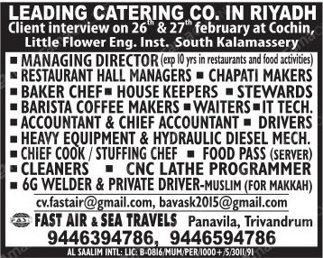 Catering company jobs in Riyadh Saudi Arabia - Urgent hiring