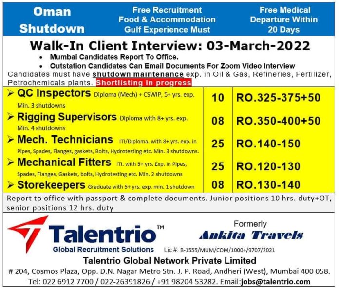 Oman shutdown jobs 2022 - Free recruitment