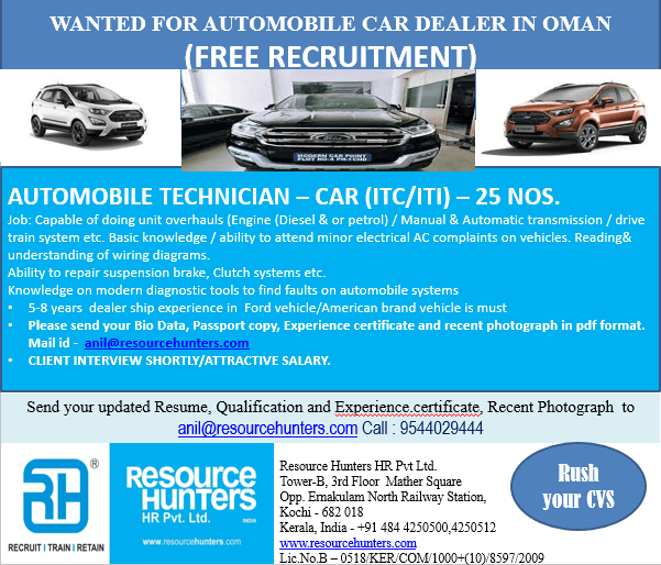 Automobile technician job in Oman - Free recruitment