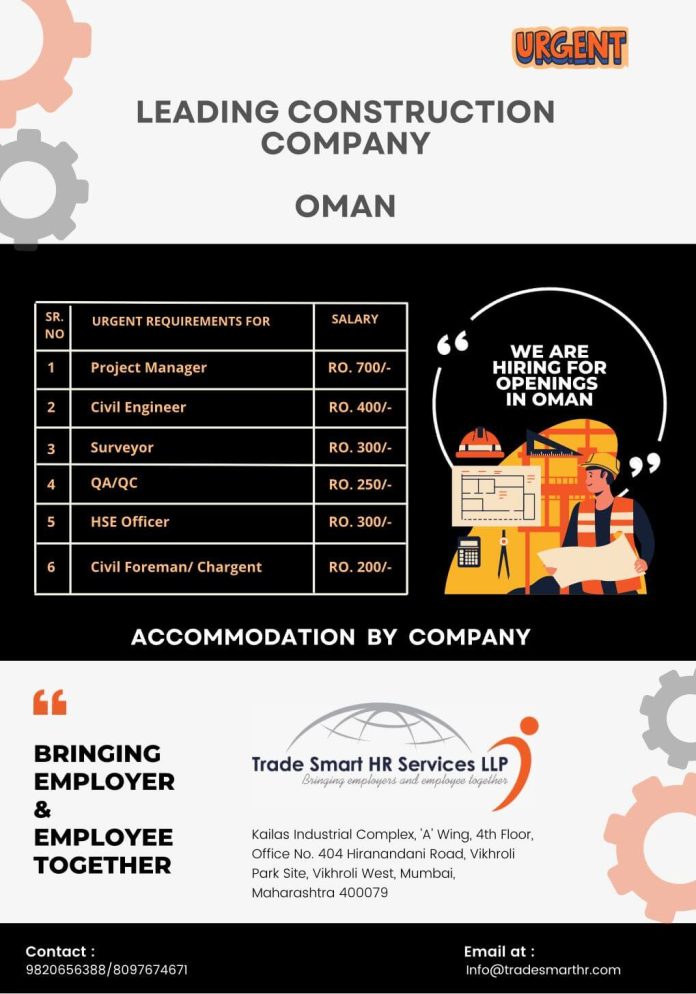 Oman construction company job vacancies - Urgent hiring
