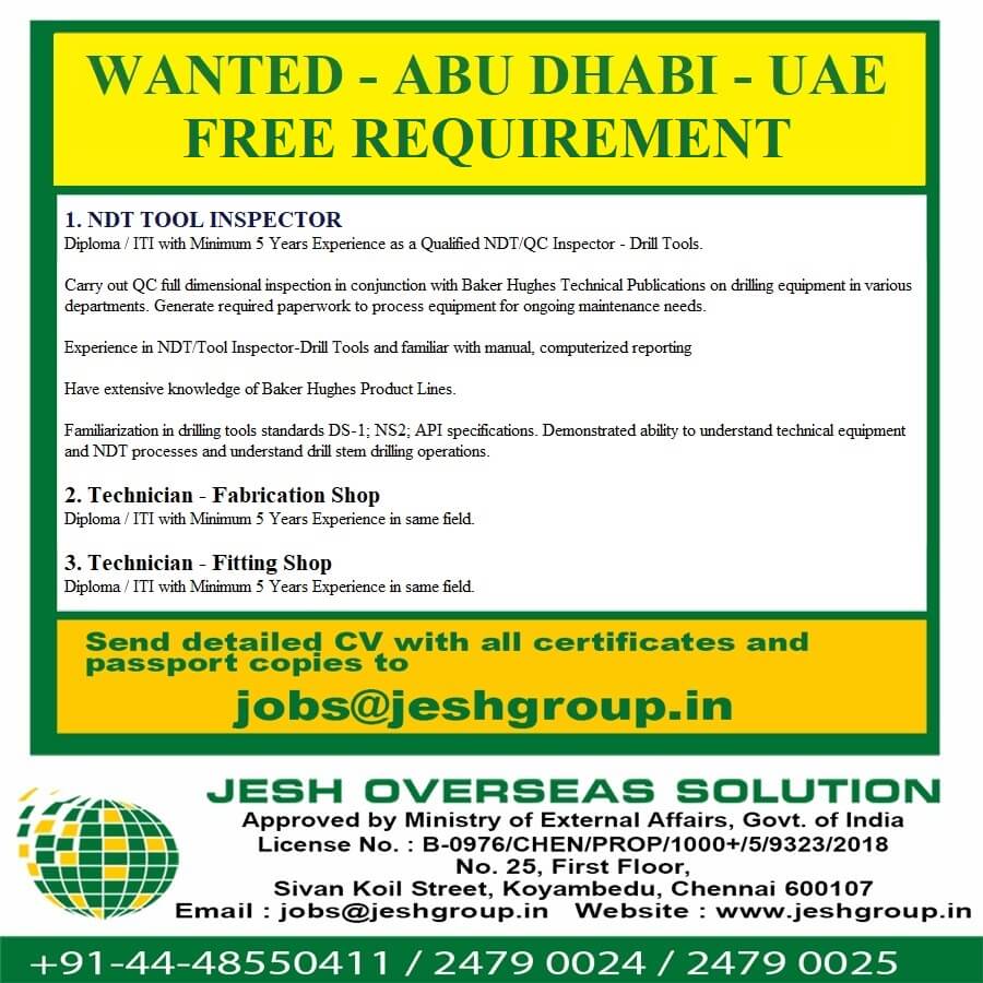Free recruitment to Abu dhabi