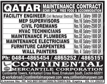 | Facility engineer (civil/mechanical/electrical) | 8 | 5000 QAR |