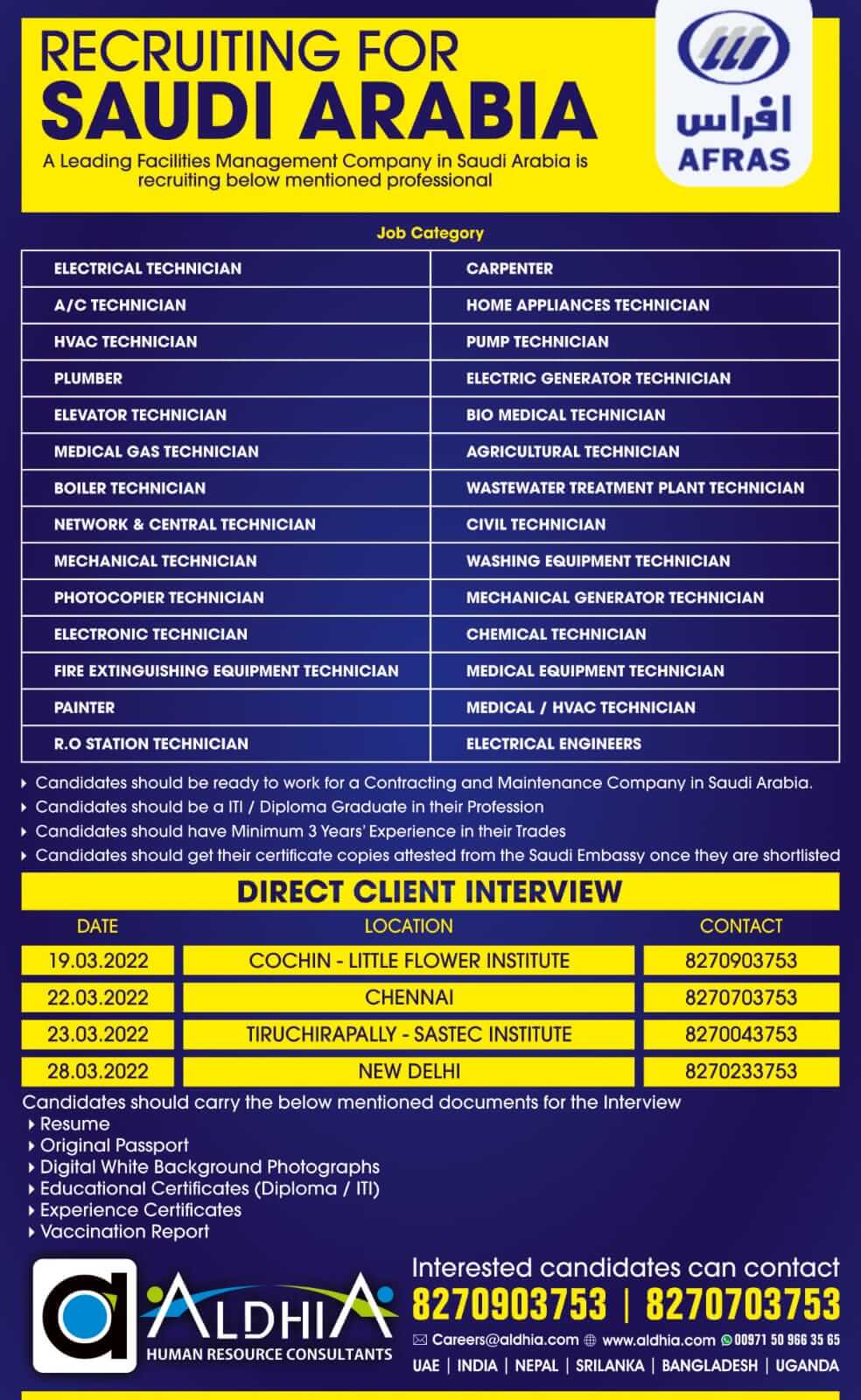 Afras company saudi arabia jobs - Walk in Interview