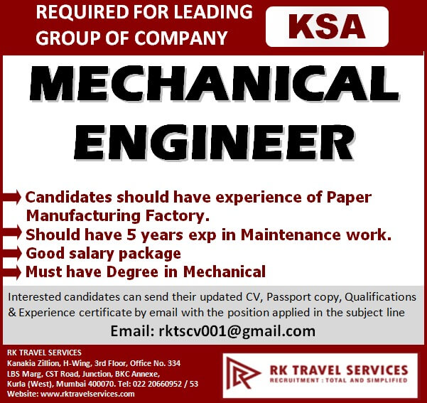 Mechanical Engineering Jobs in Saudi Arabia