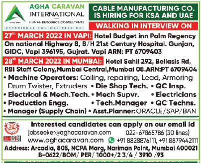Hiring for KSA & UAE - Cable Manufacturing Company