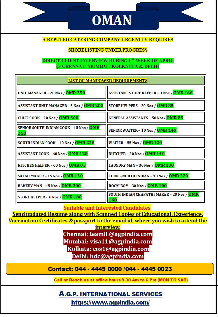Disclaimer:- GCCWALKINS have no involvement in any recruitment process, This website just sharing job vacancies & interviews from various sources. Applicants are advised to research the bonafides of the prospective employer independently. We do NOT endorse any requests for money payments and strictly advice against sharing personal or bank related information. If you suspect any fraud or malpractice, email us at gccwalkins@gmail.com