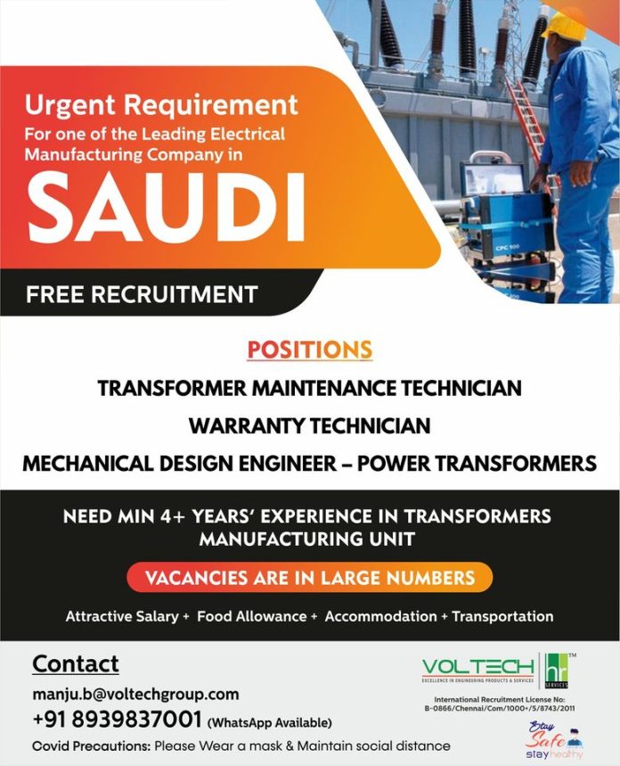Candidates should have minimum 4 years of experience in transformers manufacturing unit