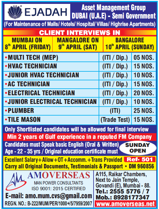 Ejadah Dubai vacancies - Maintenance of malls/Hotels/Hospital/Villas