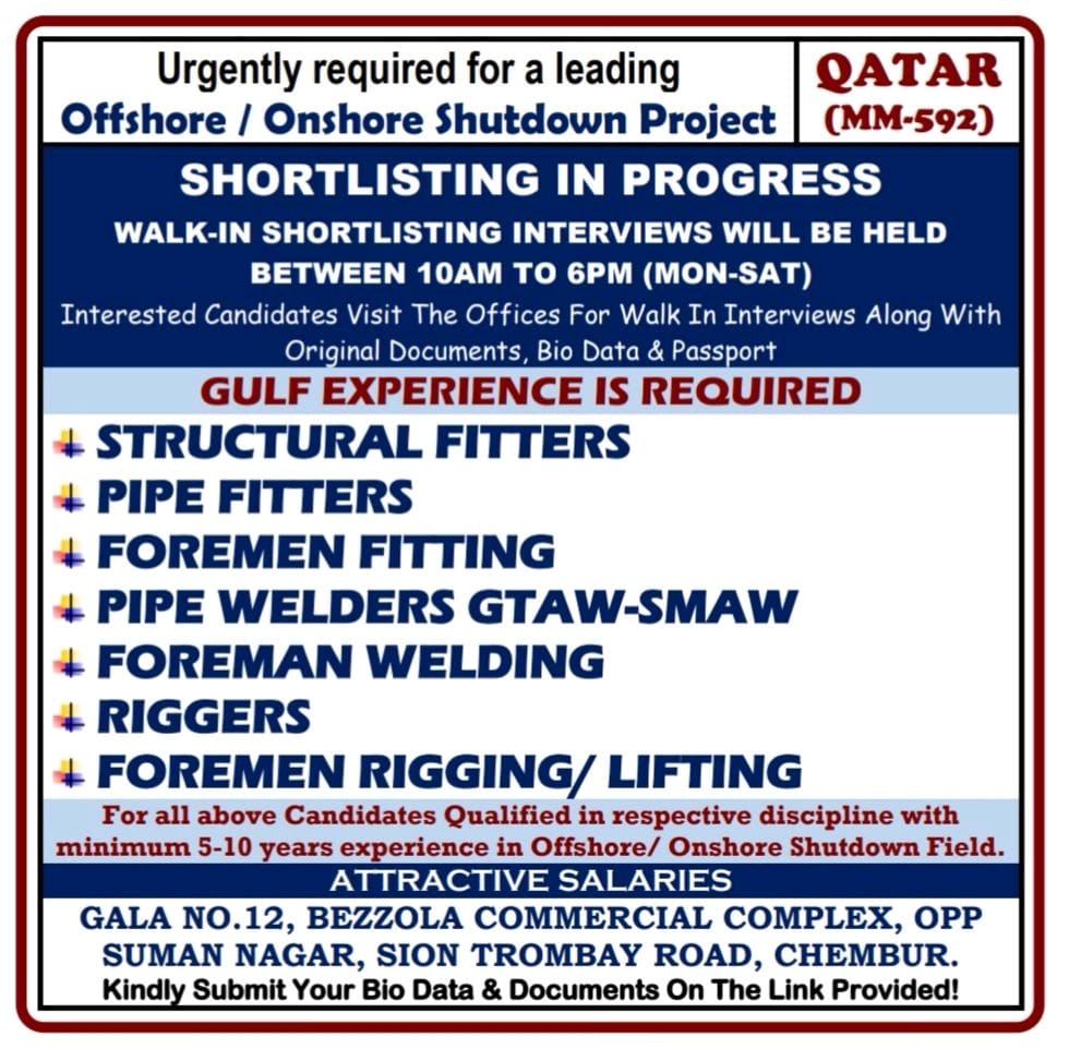 Wanted for Qatar - Offshore/Onshore shutdown project