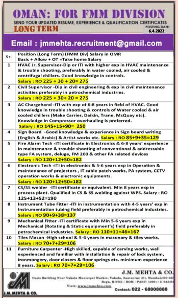 Hiring for Oman - FMM Division