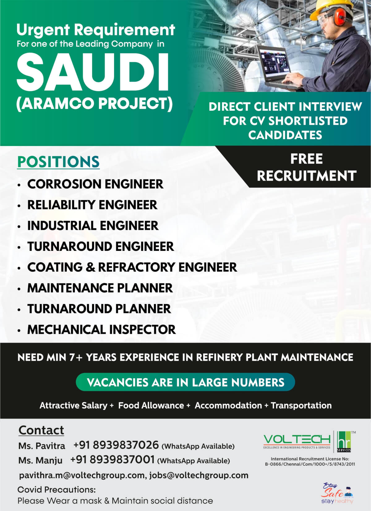 Candidates should have 7+ years of experience in refinery plant maintenance