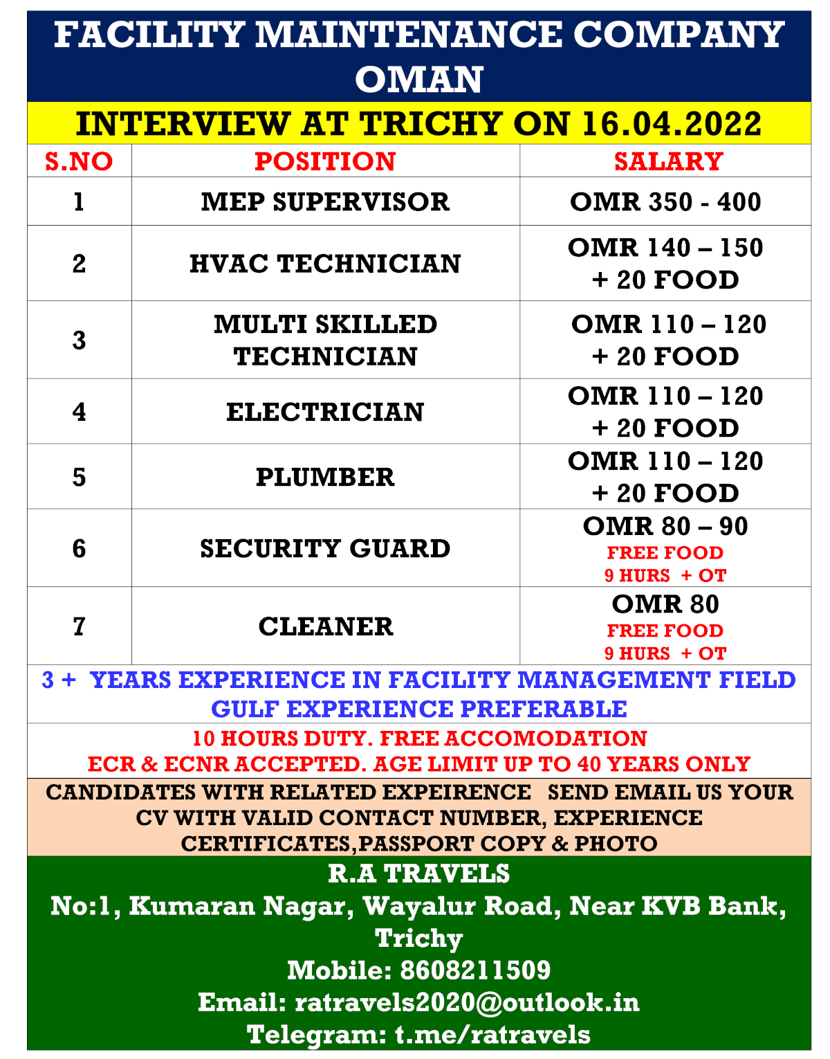 | MEP supervisor | 400 OMR | |