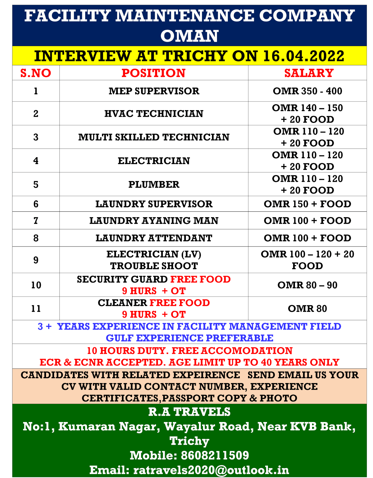 | MEP supervisor | 400 OMR | |