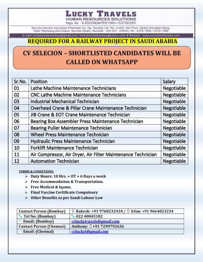 Recruitment to railway project in Saudi arabia