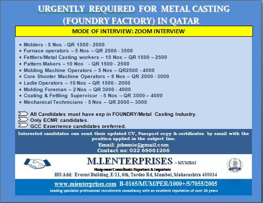 Qatar Job Vacancy 2022 - Metal Casting Company
