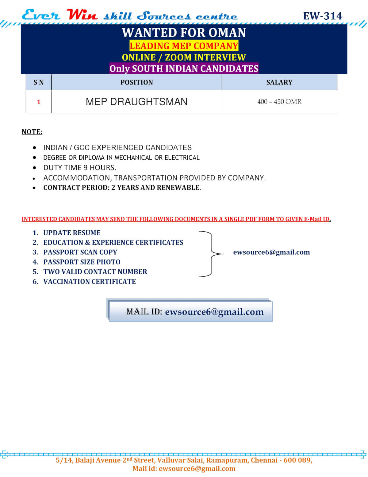 | MEP draughtsman | 450 OMR |