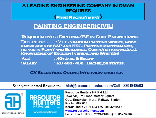 Painting engineer (Civil) job vacancy in Oman - Free recruitment