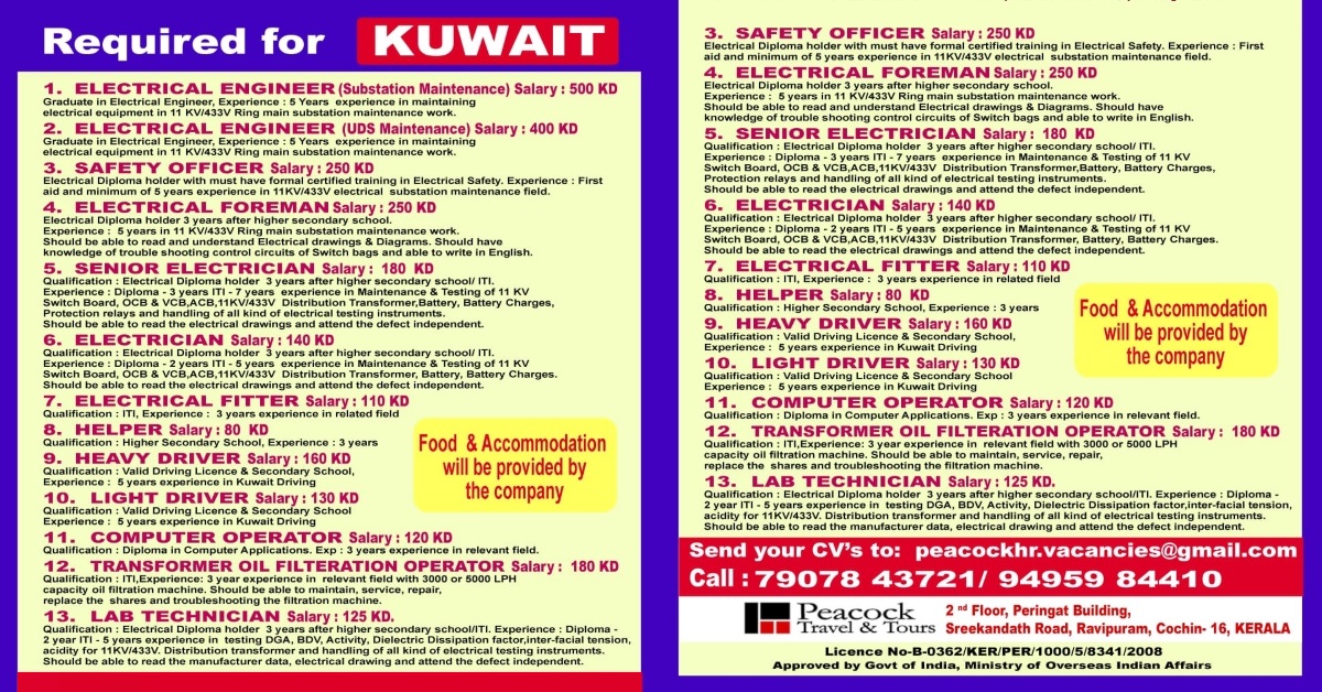 Kuwait job Vacancy for Indian - Large recruitment