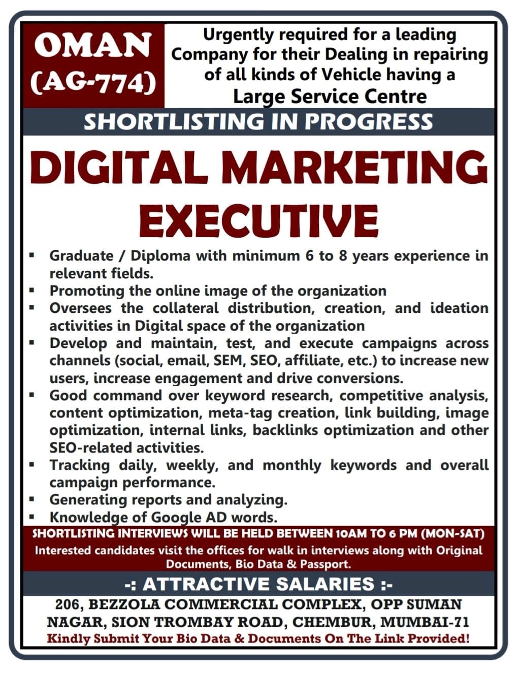 Digital marketing executive jobs vacancy in Oman