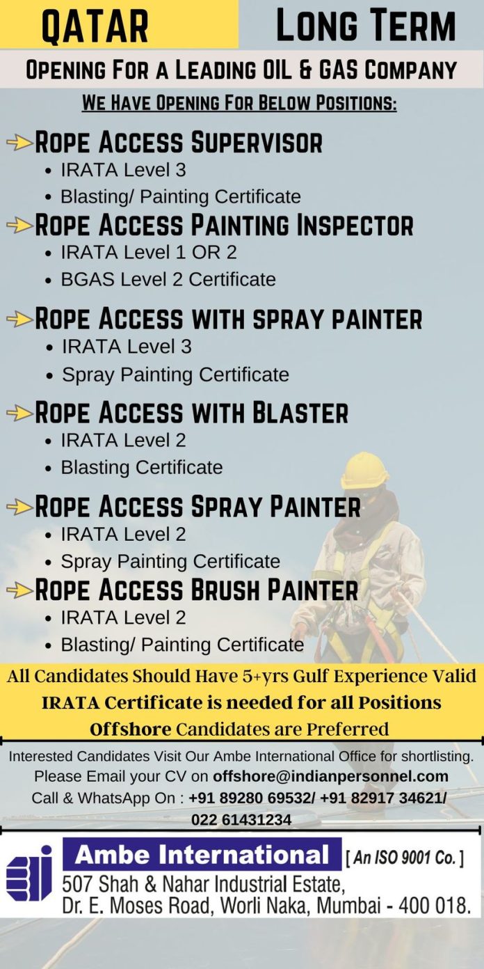 Rope Access Jobs in Qatar - Oil& Gas Company