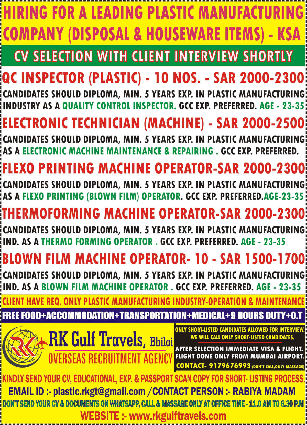 | QC inspector (plastic) | 10 | 2300 SAR |