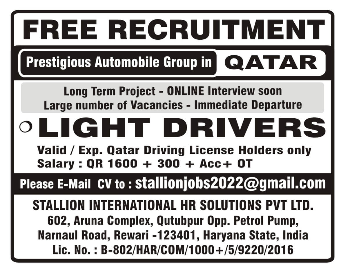 Qatar Light Driver job Vacancy 2022 - Free recruitment