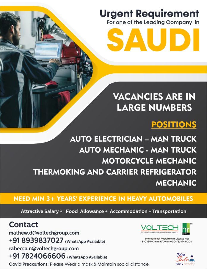 Automotive jobs in Saudi Arabia - Urgent requirement