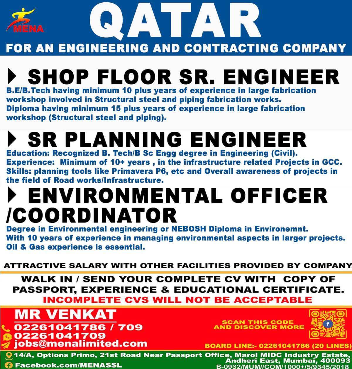 Wanted for Qatar - Engineering & Contracting Company