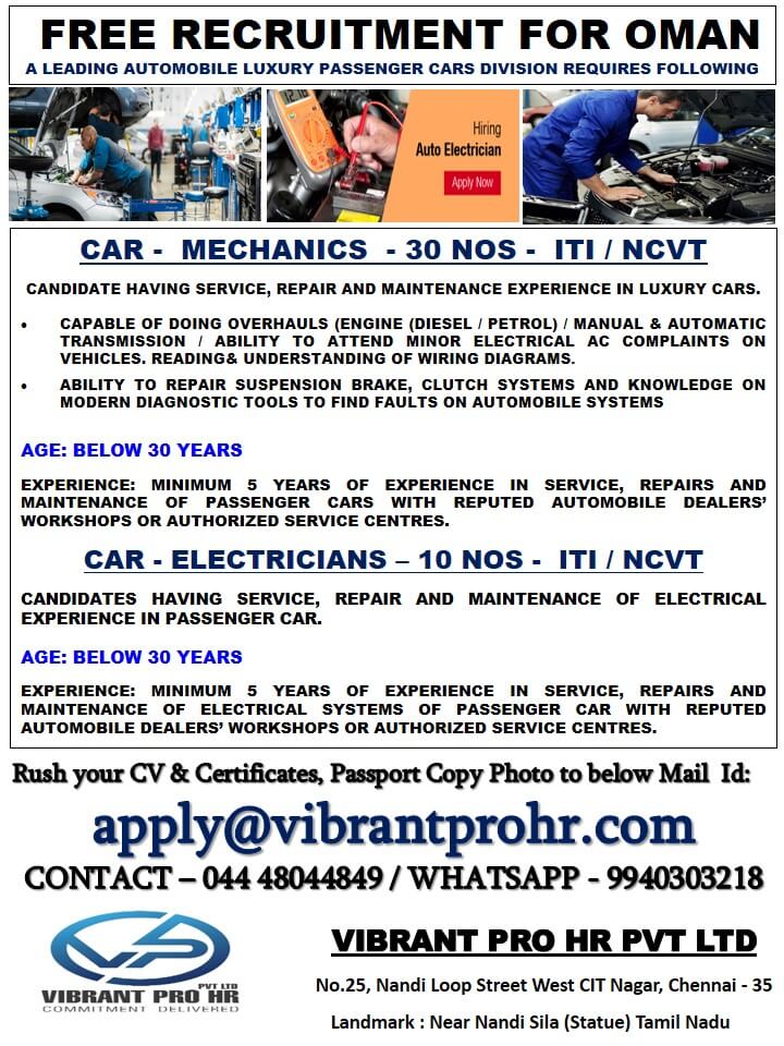 Auto mechanic jobs in Oman - Free recruitment