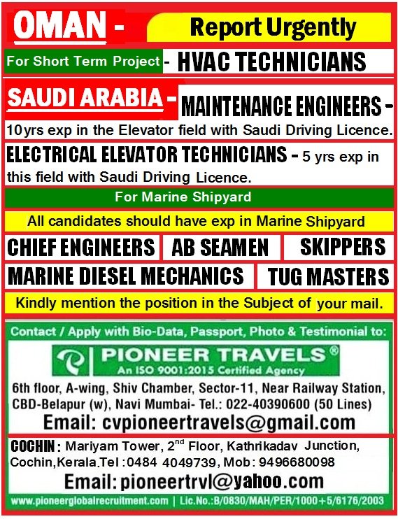 Job Location: Saudi Arabia, Oman,
