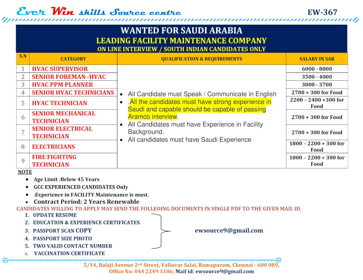 | HVAC technician | 2700 SAR | |