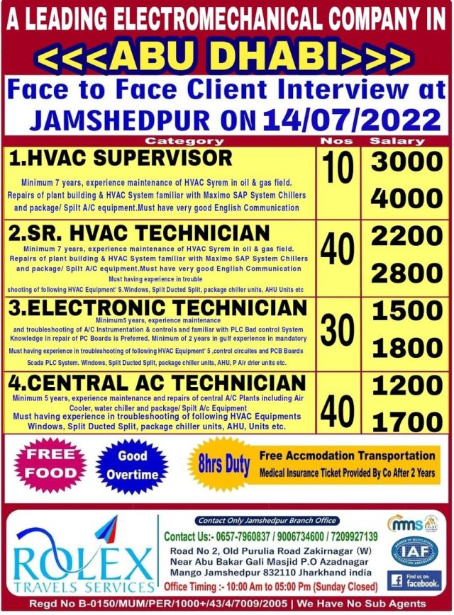 Wanted for Abu dhabi - Electromechanical Company