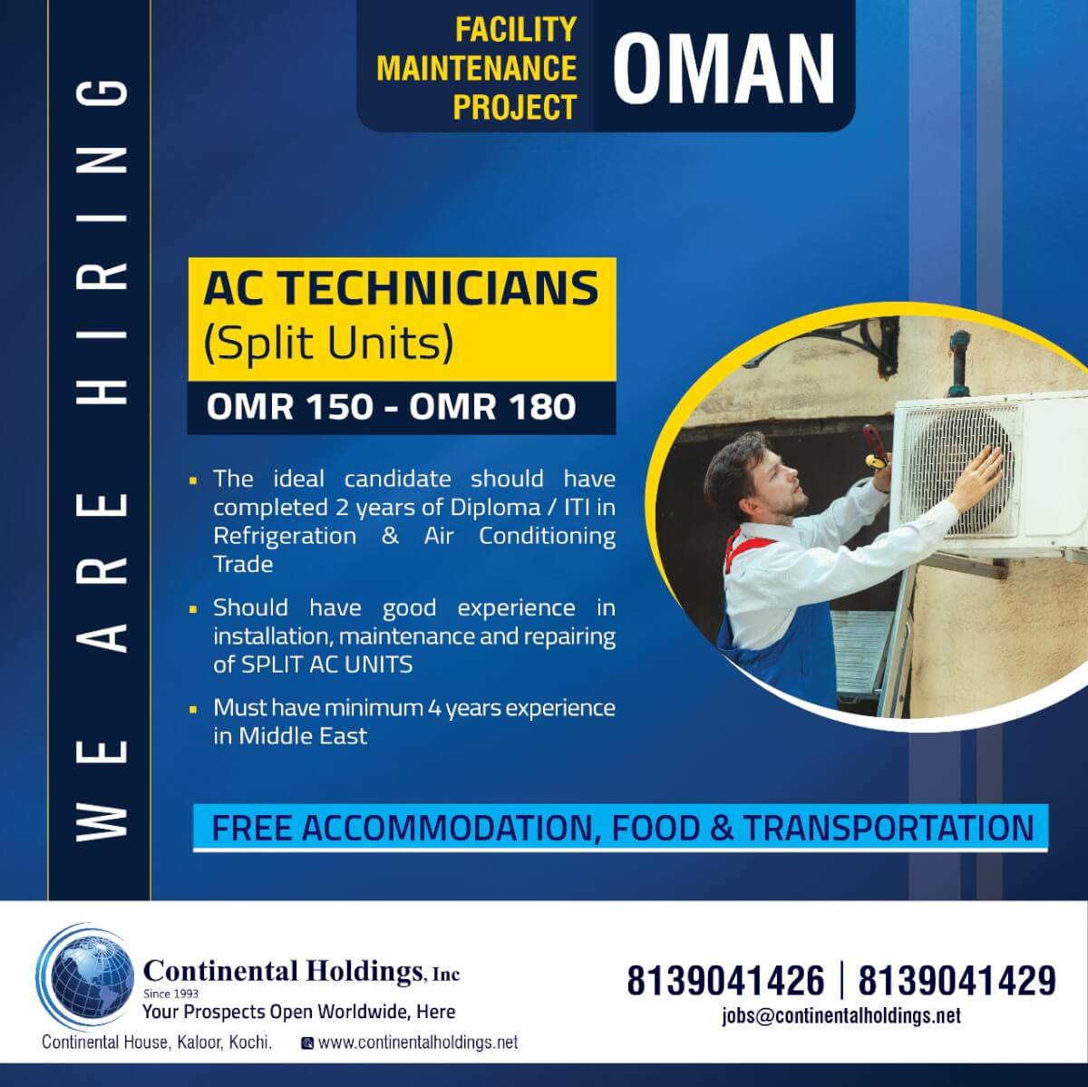 AC Technician Jobs in Oman 2022 - Urgent hiring