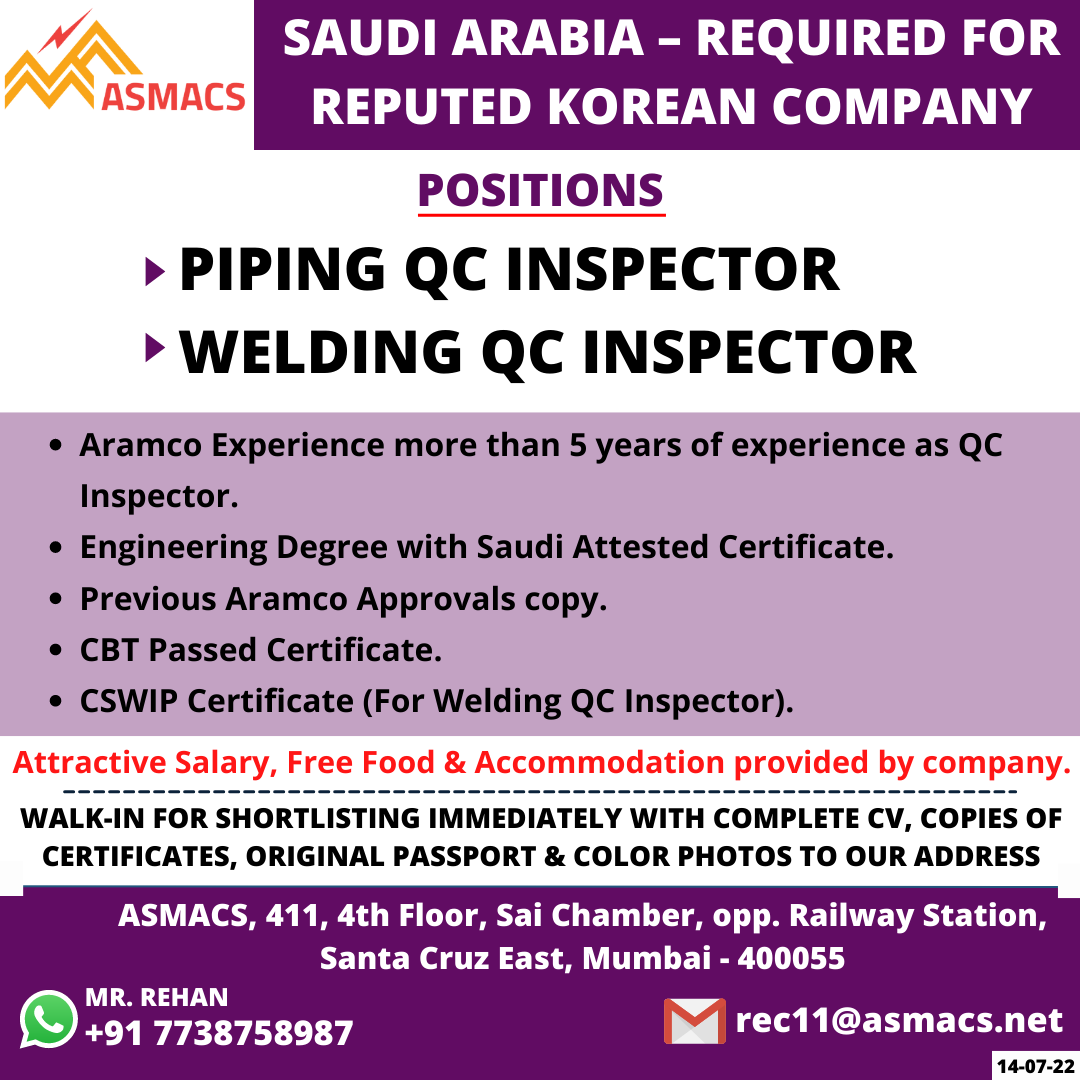 | Piping QC inspector | ||