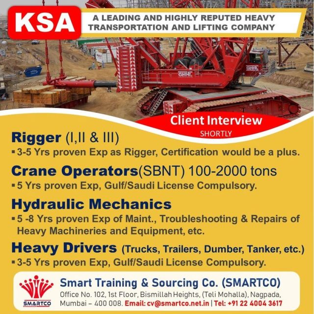 Wanted for KSA - Heavy Transportation & Lifting company