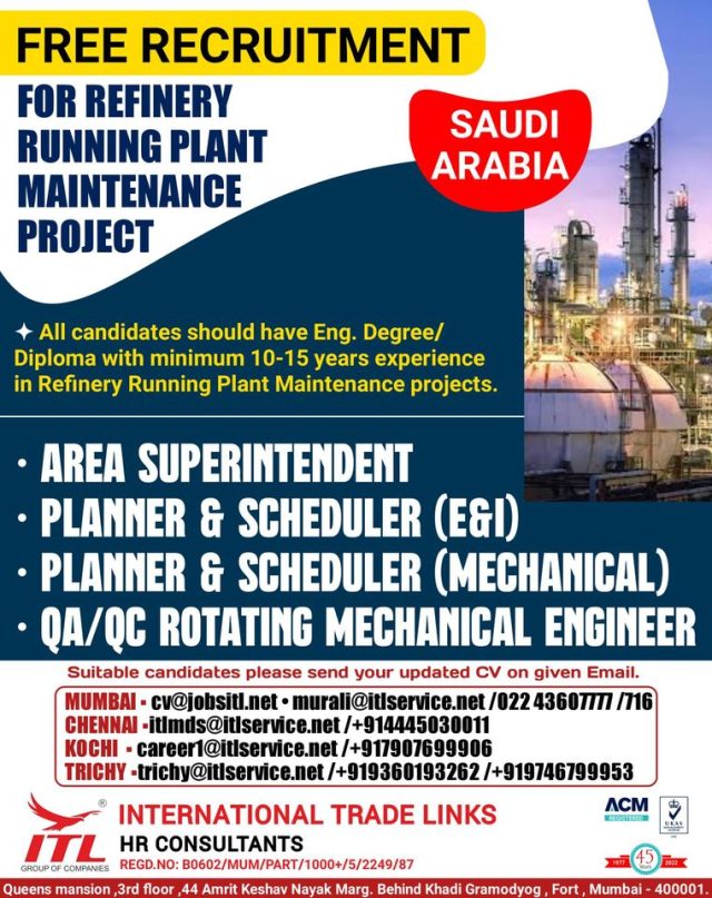 Free recruitment to Saudi arabia - Refinery Maintenance Project