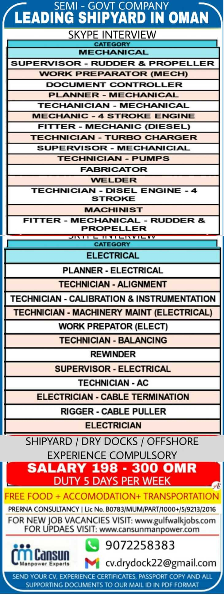 Supervisor - rudder 7 propeller | 300 OMR | |