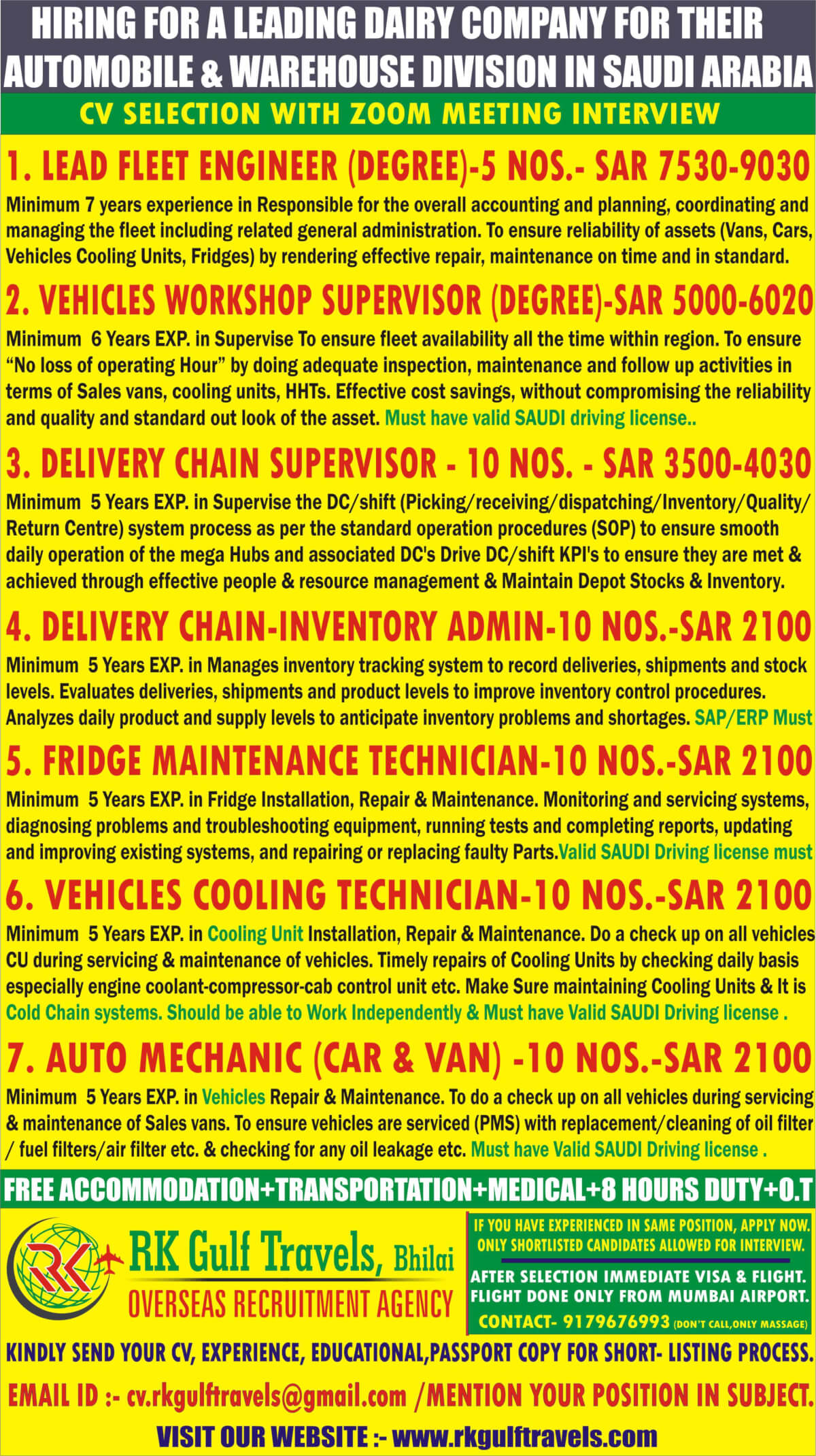 Hiring for KSA - Automobile & Warehouse Division in Dairy Company