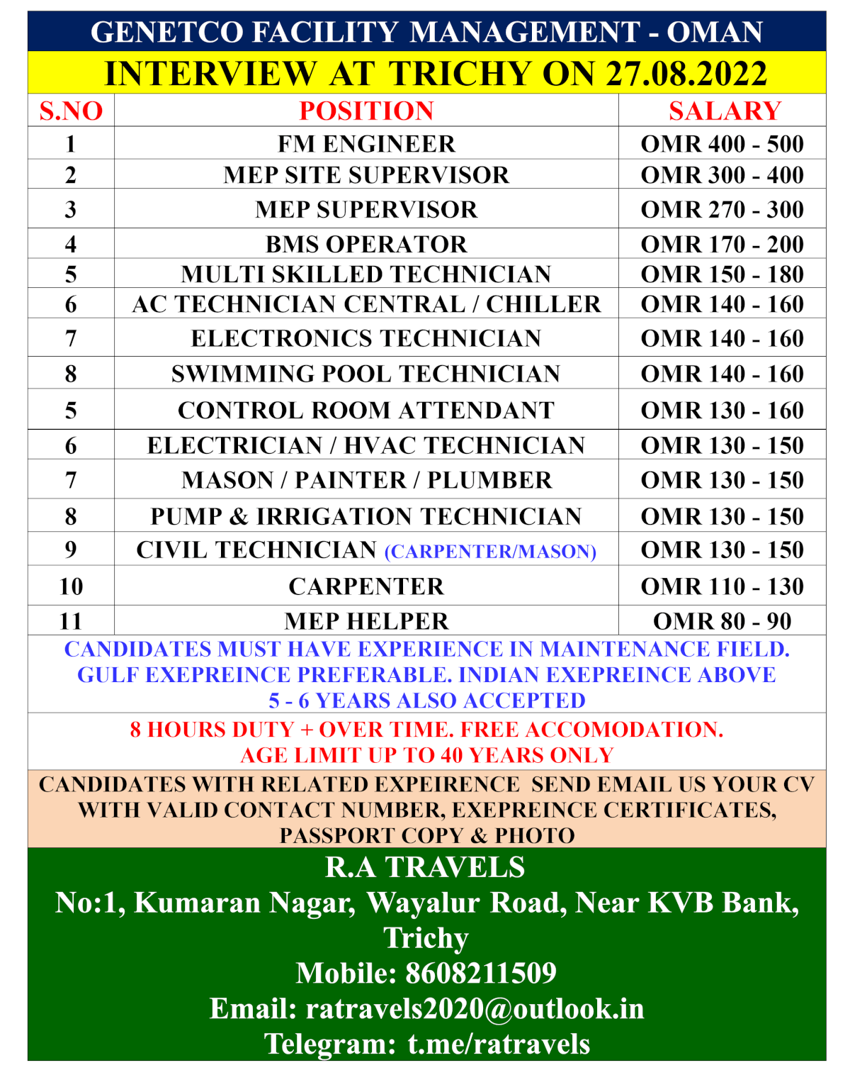 Disclaimer:- GCCWALKINS have no involvement in any recruitment process, This website just sharing job vacancies & interviews from various sources. Applicants are advised to research the bonafides of the prospective employer independently. We do NOT endorse any requests for money payments and strictly advice against sharing personal or bank related information. If you suspect any fraud or malpractice, email us at gccwalkins@gmail.com