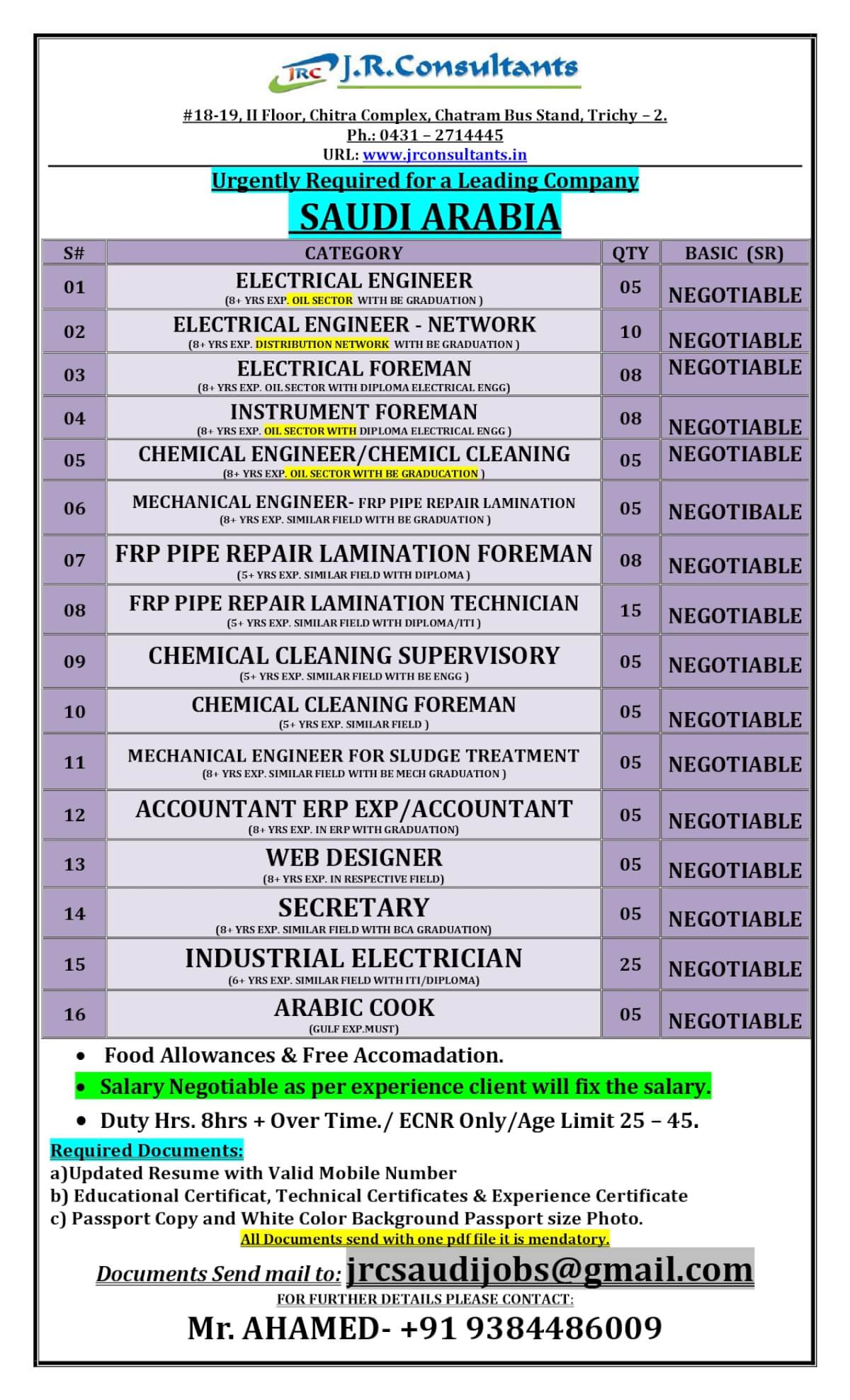| Chemical cleaning supervisory | 5 | Negotiable |