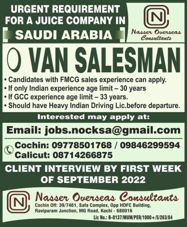 Van Salesman jobs in Saudi Arabia 2022 - Juice Company