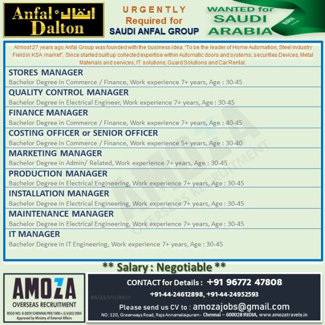 Anfal Dalton Saudi arabia jobs - Urgently required